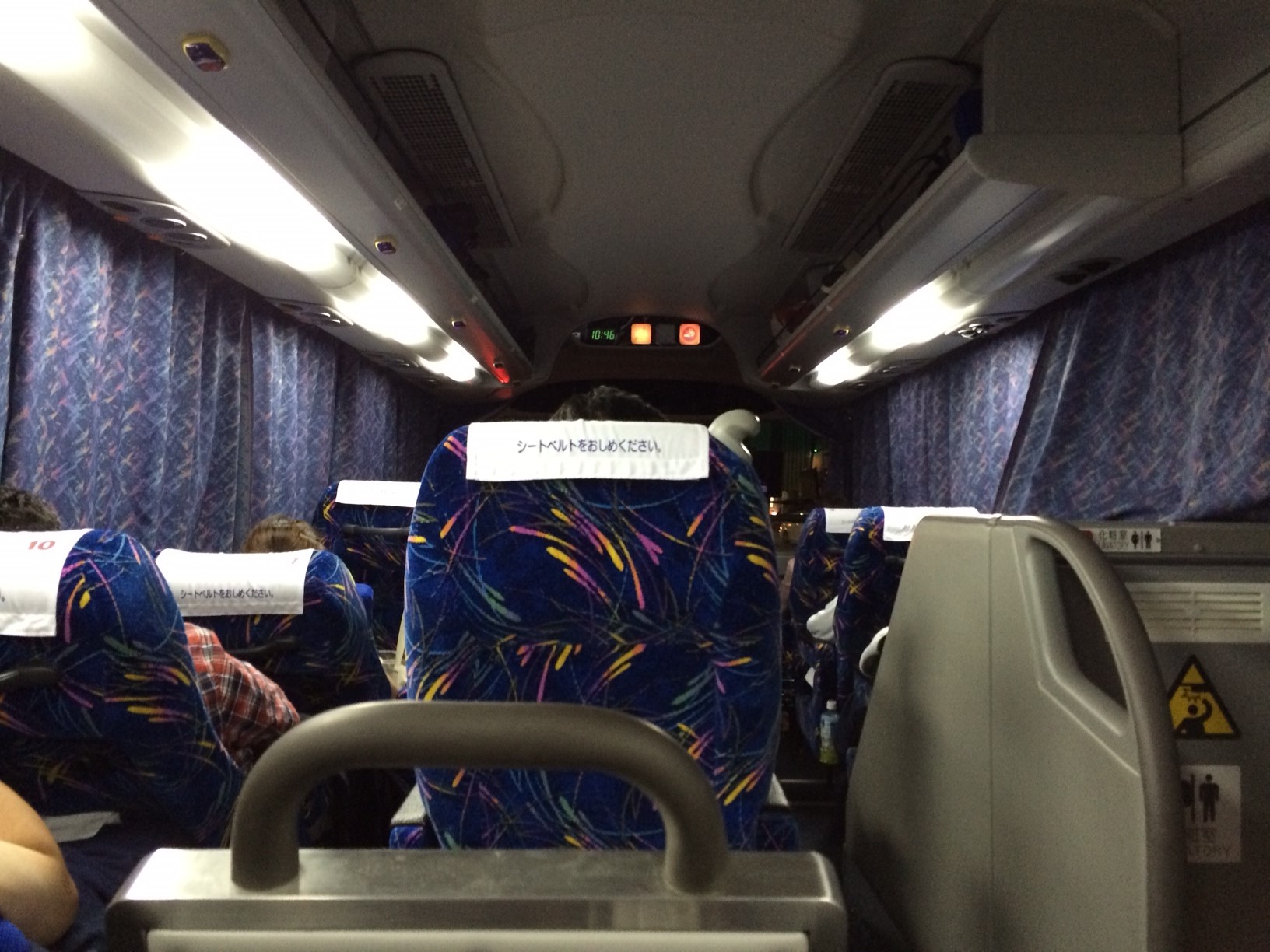 脚も伸ばせないし、背もたれもあまり倒せない中、正直、寝れませんでした。(2~3時間くらい)